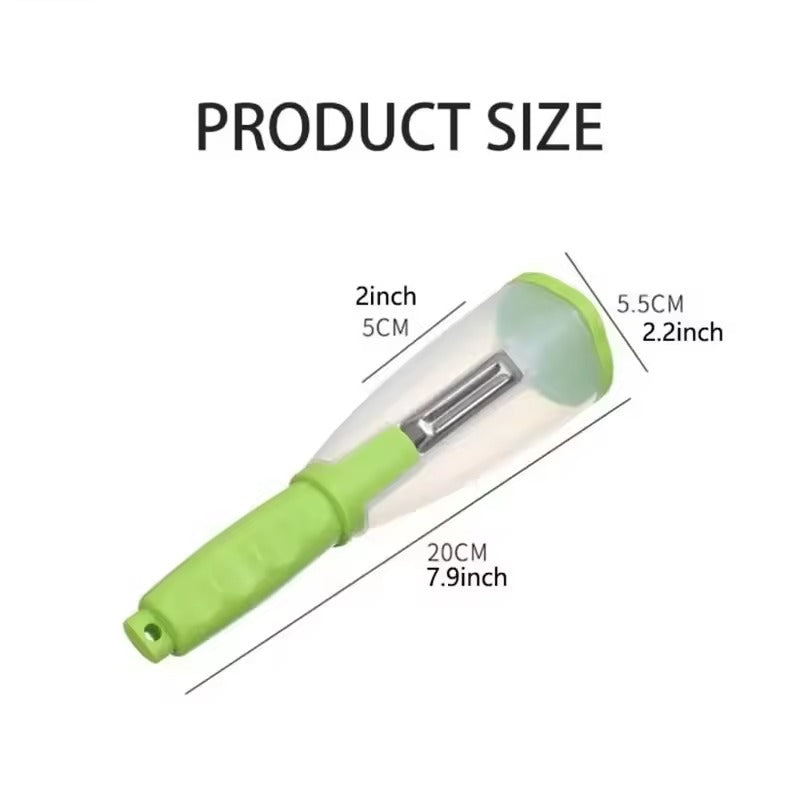 This peeler features a built-in container that neatly collects the peels as you work. Simply glide the sharp stainless steel blade along the surface of your fruit or vegetable, and the peels will accumulate in the transparent container for easy disposal.